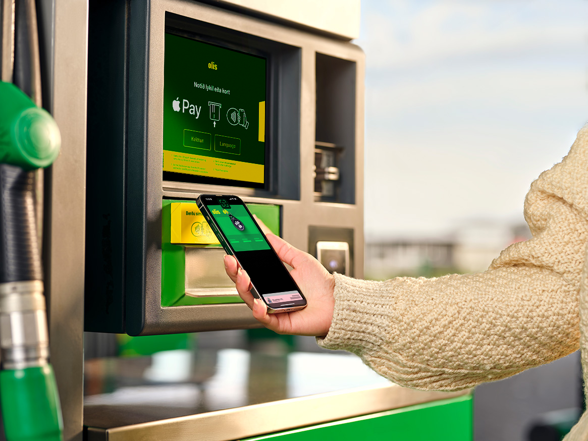 Nú hafa verið settir upp litlir kassalaga skynjarar á allar eldsneytisdælur á stöðvum Olís og ÓB með skilaboðunum „Berðu símann að hér“.